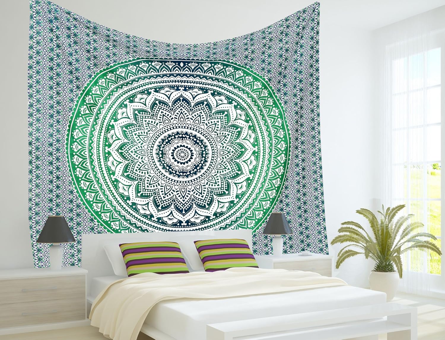 Green Star Mandala Tapestry Wall Hanging Hippie Dorm Room Tapestries