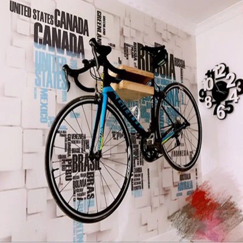 Indoor Wall Mounted Bicycle Parking Rack Solid Wood Road Bike