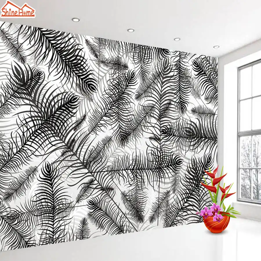 Shinehome Black And White Leaf 3d Wallpapers For 3 D Dinning