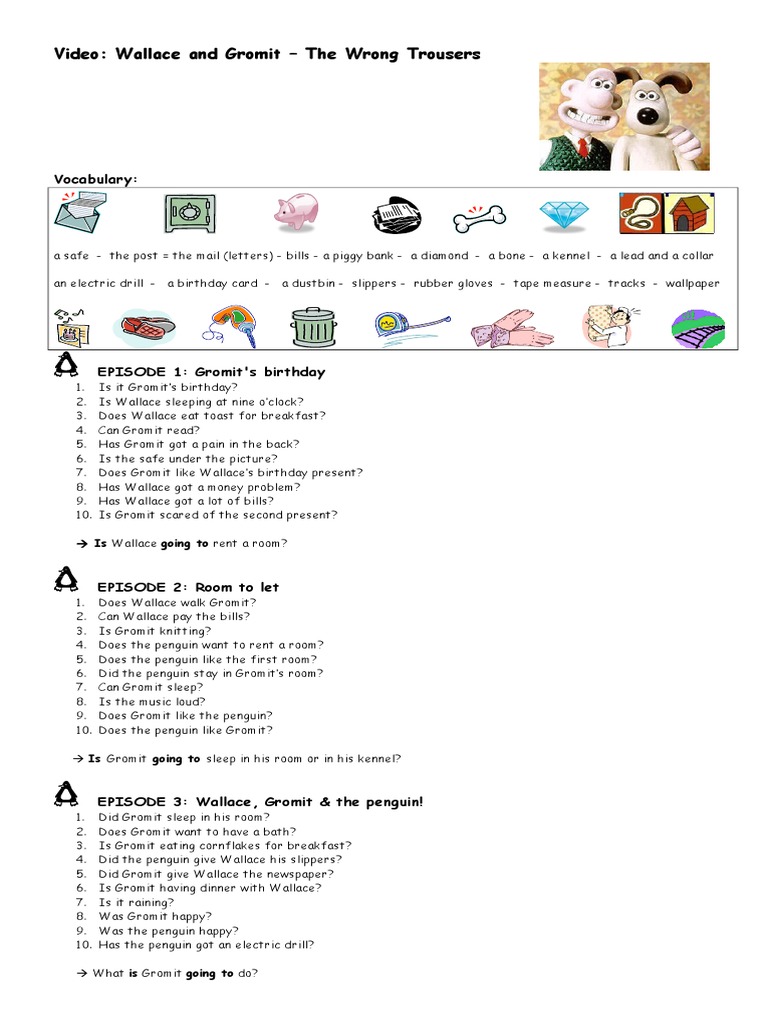 Video Wallace And Gromit The Wrong Trousers Vocabulary Leisure