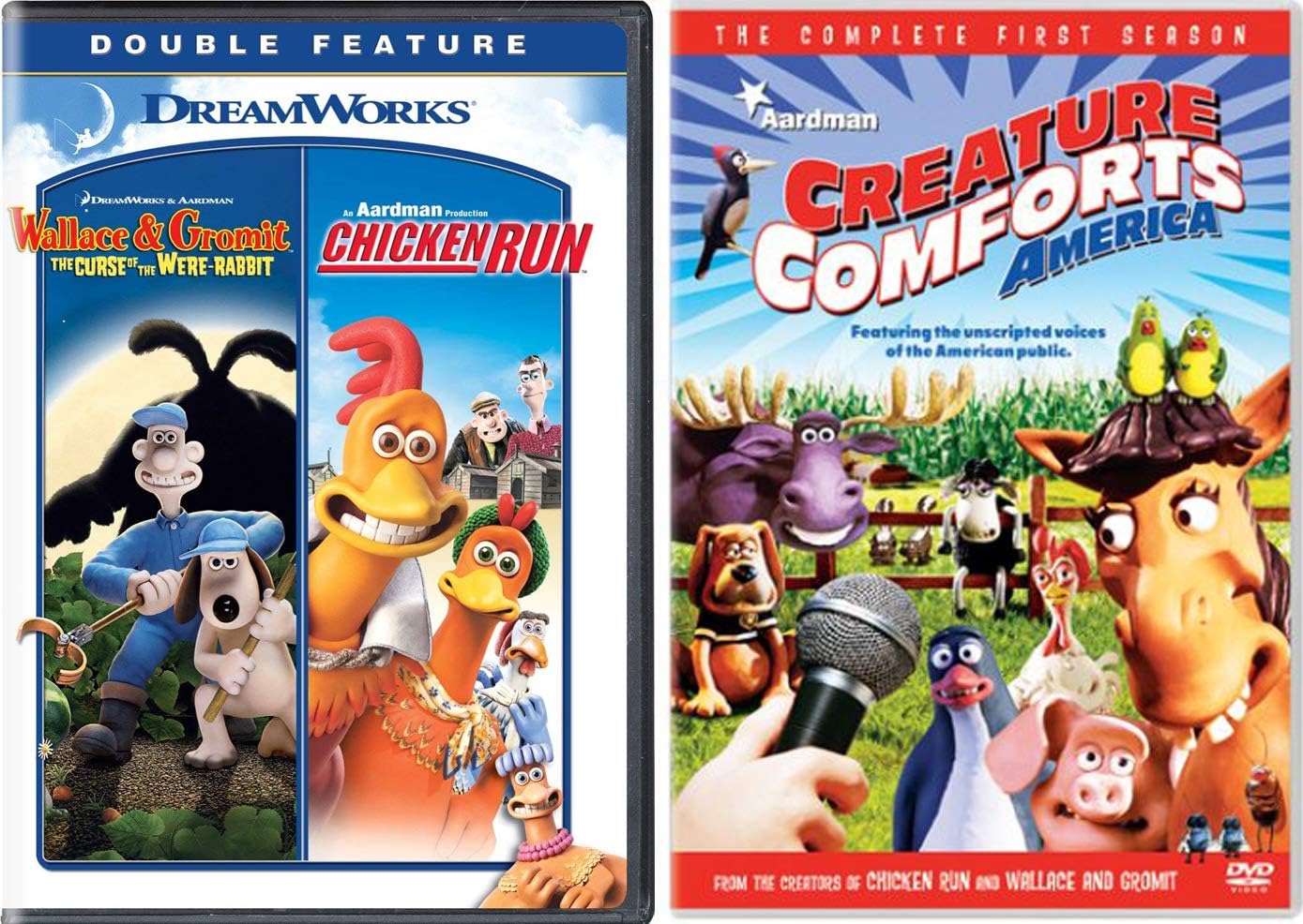 Animated Creatures Chicken Run Aardman Wallace Gromit Curse Of The Were Rabbit Dvd Movie Creature Comforts America Talking Animals 2 Pack Amazon Co Uk Dvd Blu Ray